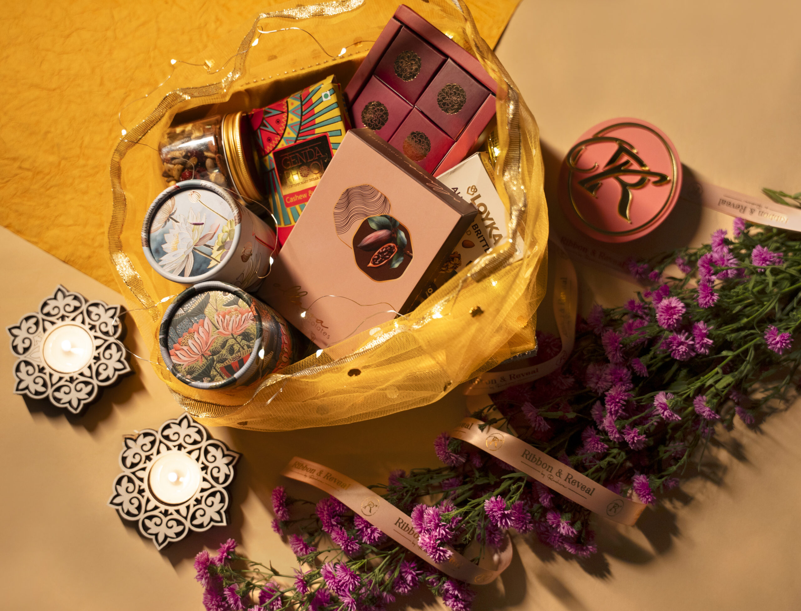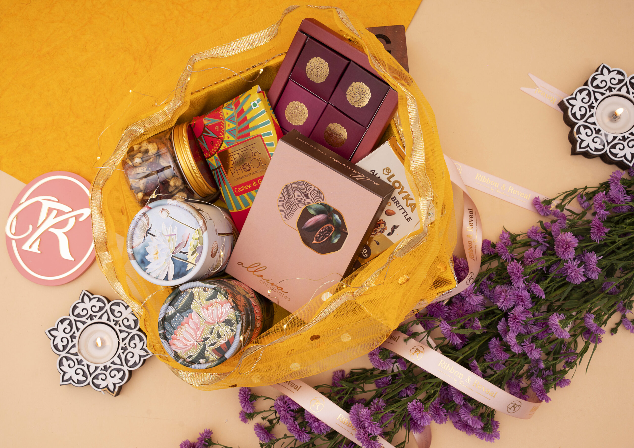 *Please note: Diya, Mithai, flowers, and our brand logo shown are for presentation only and are not part of the hamper.