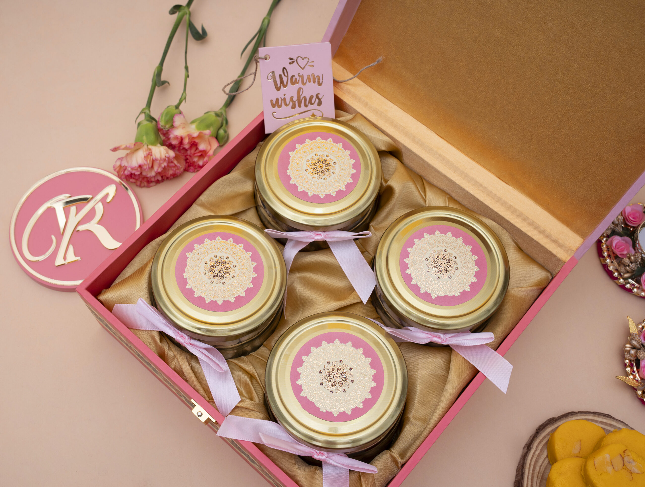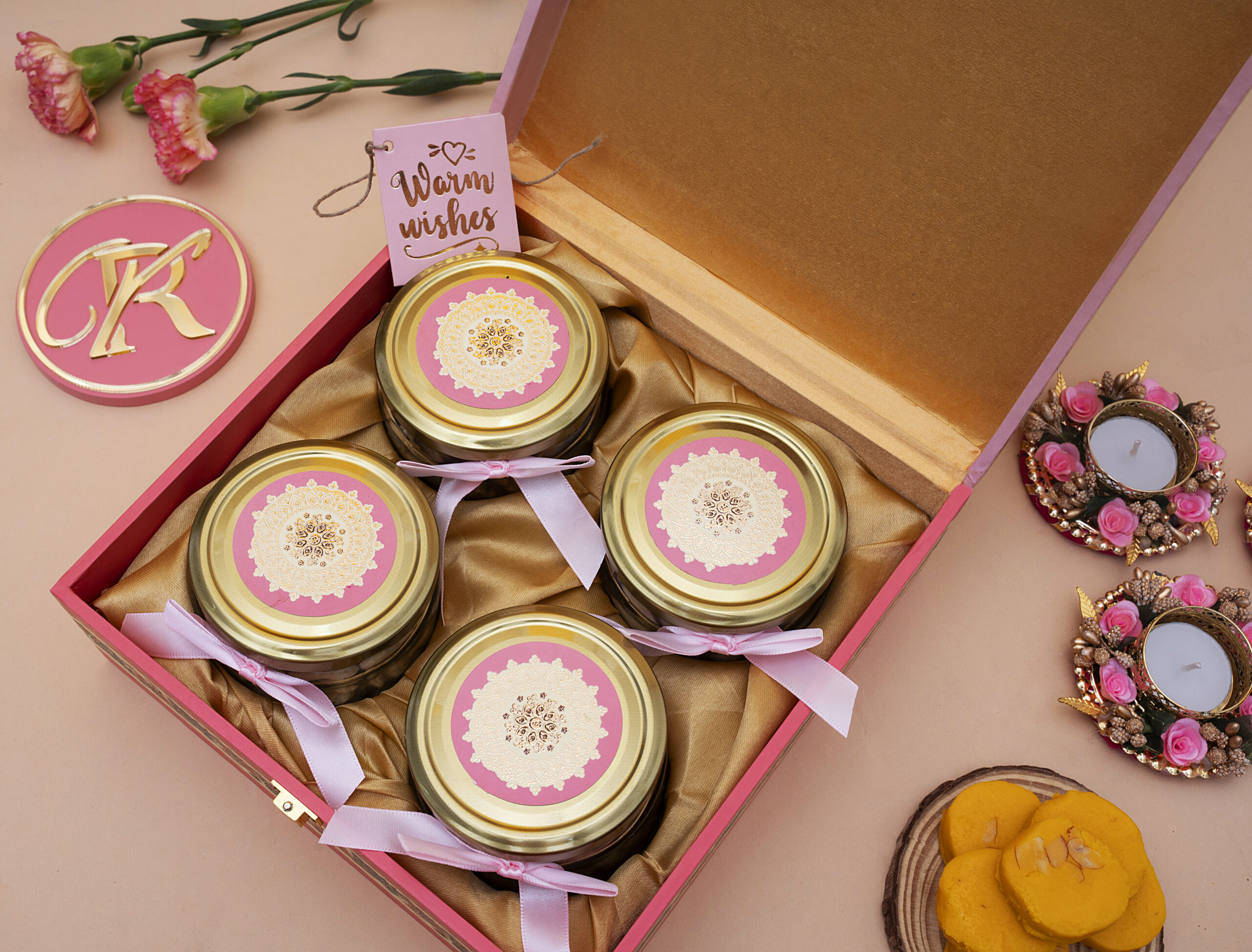 *Please note: Diya, Yellow Peda Mithai, flowers, and our brand logo shown are for presentation only and are not part of the hamper.